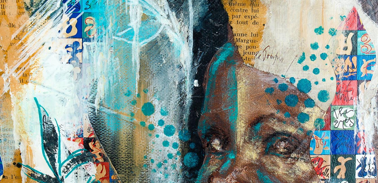 Je vous invite, avec force et délicatesse, à entrer dans mon monde que ce soit par le biais de mes peinture acryliques ou mes collages.
